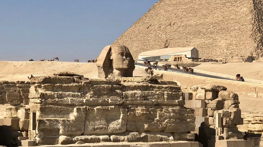 狮身人面像位于埃及吉萨的金字塔墓区,头像部分一说是古埃及法老哈夫拉按自己的肖像建造。孙卫南摄