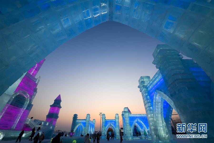 这是哈尔滨冰雪大世界园区中的景观(1月5日摄)。新华社记者王松摄