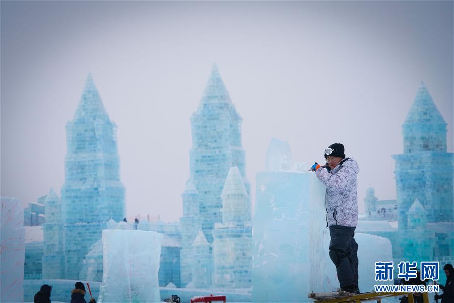 1月6日,参赛者在创作冰雕。新华社记者王松摄