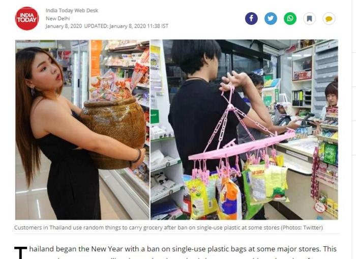 新年伊始,泰国开始禁止在一些商店使用一次性塑料袋,尽管该禁令要到2021年才能全面生效,但像7-11这样的主要商店已不再为顾客提供塑料袋。