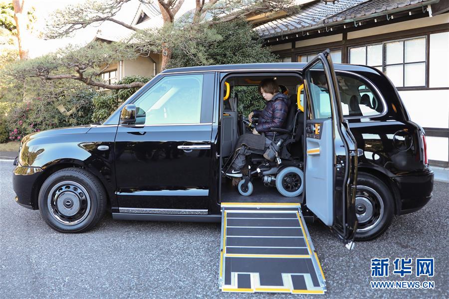 1月10日,在日本东京,一名残障人士试乘伦敦电动汽车公司的电动出租车TX。 新华社记者 杜潇逸 摄