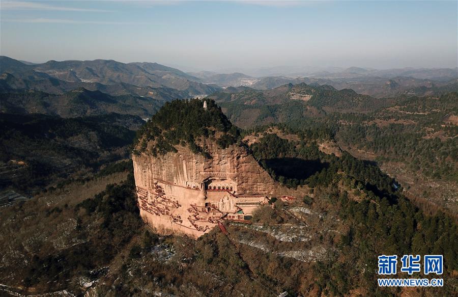 12月26日无人机拍摄的麦积山石窟。新华社记者马宁摄