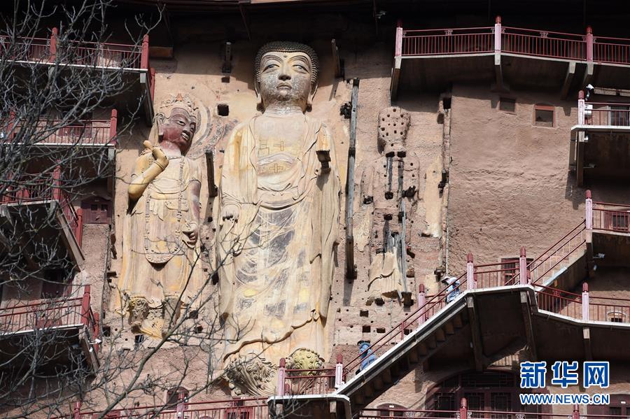 12月26日,游客在麦积山石窟参观游览。新华社记者马宁摄
