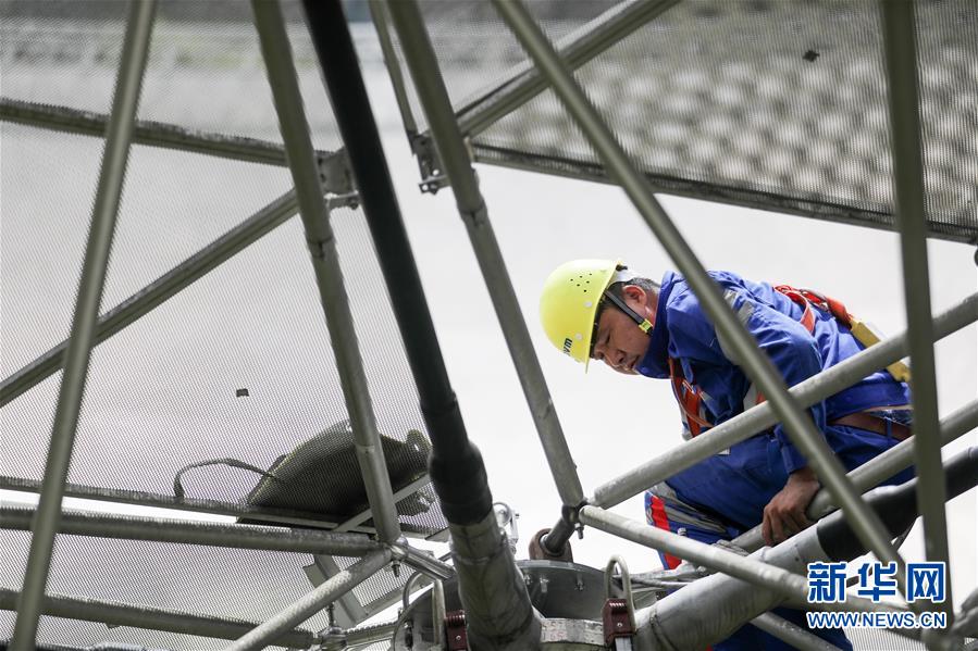 8月28日,工作人员在对FAST进行检修。近日,工作人员对“中国天眼”进行日常维护和检修,给“天眼”进行全面“体检”。被誉为“中国天眼”的500米口径球面射电望远镜(FAST)于2016年9月25日落成启用,即将迎来落成三周年。新华社记者欧东衢摄