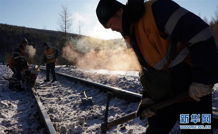 1月8日,西罗奇维修工队工作人员在嫩林线497公里处进行维修作业。