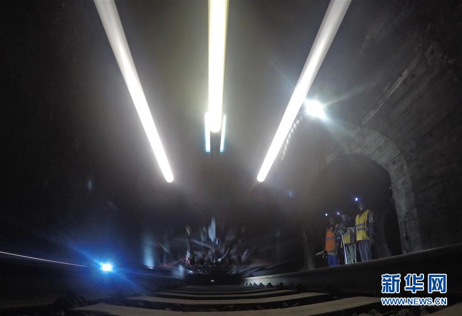 1月9日,在加格达奇工务段西罗奇岭二号隧道,西罗奇维修工队工作人员在避车洞内躲避列车。新华社记者王毓国摄
