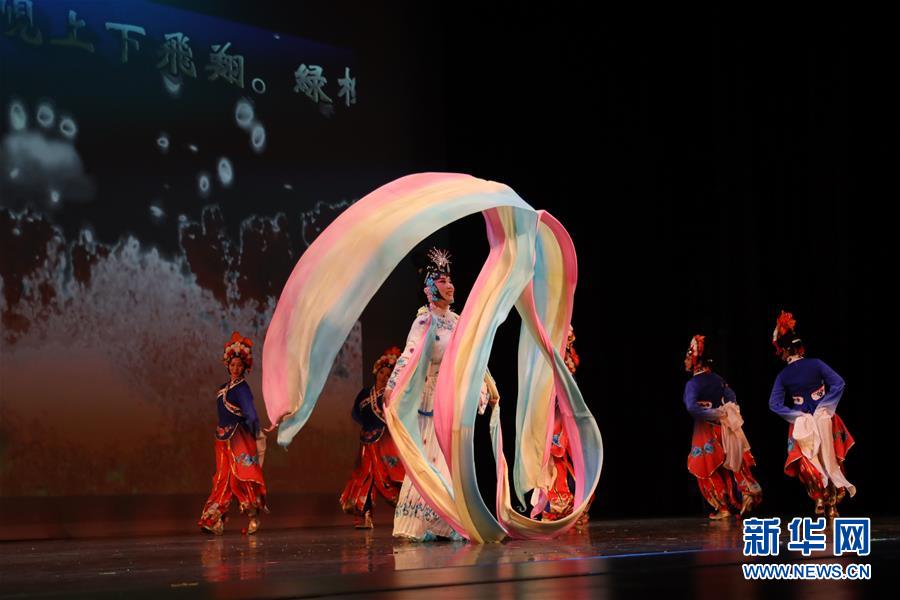 1月11日,在美国休斯敦举办的“拥抱春天”晚会上,演员演唱京剧《天女散花》。新华社记者 刘立伟 摄