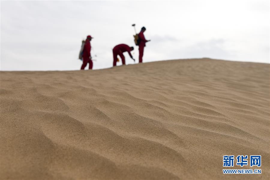 1月13日,测量工在测线上布设炮点桩号。地球物理勘探是油气开发的第一步,相当于给地球做CT。物探工人按照严格的测线部署,在相应位置钻井,然后实施地震,采集地震波数据。科研人员通过数据组成的“CT片”,就能够清晰地“看”到地下的地质结构,判断哪里埋藏有石油或者天然气。2019年10月,东方地球物理勘探有限责任公司塔里木物探处2113队进入新疆塔克拉玛干沙漠腹地,开始中古14-21、塔中2两个区块的三维地震勘探。近2000名物探工人将在1000平方公里的范围内一直工作到2020年4月,这也意味着他们将在塔克拉玛干沙漠腹地连续度过第14个除夕夜。蕴藏着丰富石油天然气资源的新疆塔克拉玛干沙漠有“死亡之海”之称,气候干燥,年降水量在50毫米以下,冬季地表最低温度超过零下30摄氏度,是世界油气勘探难度最大的地区之一。为避开风季,物探工人每年9、10月份进入沙漠,一直工作到来年4月,夜以继日与黄沙、严寒为伴,用辛勤的汗水,为祖国找油找气。新华社记者丁磊摄