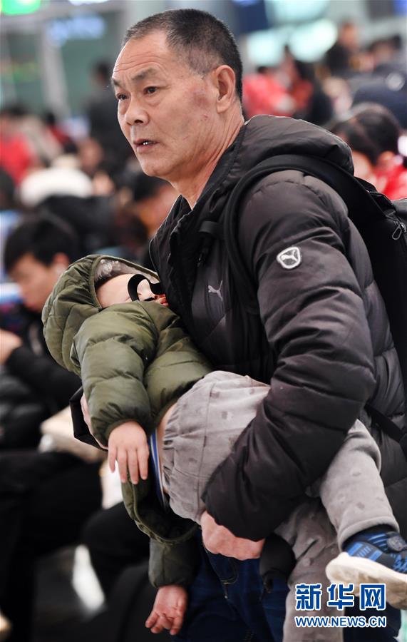 1月14日,在西安北站候车大厅,一位旅客抱着睡熟的孩子等待上车。路再远、再艰辛,也挡不住回家的脚步。在西安北站的每一个角落,处处充满温情和归乡的盼望。连日来,西安北站日均发送旅客12.1万人次,一列列春运的列车,载着中国人的乡愁,驶向远方。新华社记者陶明摄