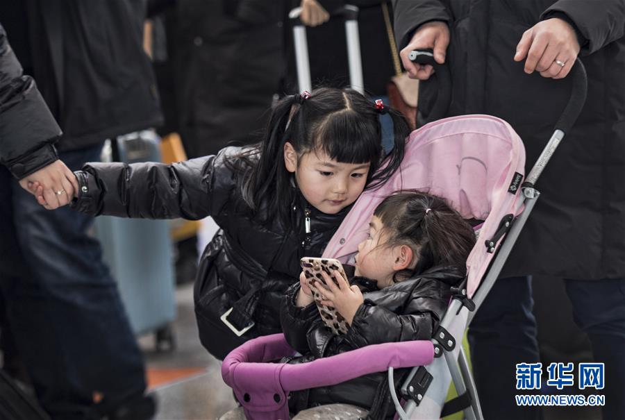 1月14日,在西安北站候车大厅,排队进站的两名小朋友在交谈。路再远、再艰辛,也挡不住回家的脚步。在西安北站的每一个角落,处处充满温情和归乡的盼望。连日来,西安北站日均发送旅客12.1万人次,一列列春运的列车,载着中国人的乡愁,驶向远方。新华社记者陶明摄
