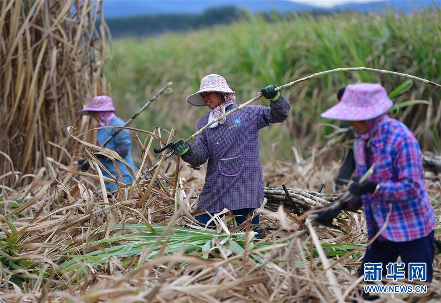近日,广西柳州市鹿寨县进入糖料蔗榨糖季,蔗农积极收割抢运,冬日田野里一片繁忙。甘蔗产业是鹿寨县农民脱贫致富的主要产业之一,目前全县甘蔗种植面积达12万亩。新华社记者黄孝邦摄