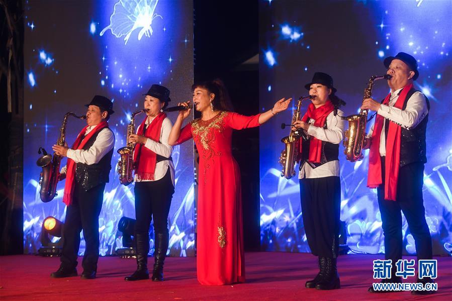 1月14日,杭州市余杭区中泰街道中桥村的文化公园内在进行“我们的村晚”萨克斯表演。临近春节,浙江省杭州市余杭区中泰街道各村社的文化礼堂纷纷上演“我们的村晚”。老百姓自编、自导、自演为主的“土味”联欢会因接地气、亲情浓而深受当地百姓的喜爱,成为当地乡村百姓的新年迎春“文化大餐”。近年来,中泰街道以文化振兴助推乡村振兴。目前,中泰街道下属各村陆续建成文化礼堂7个、社区文化家园2个,努力培育和挖掘出一批乡土文化人才及原创作品,2019年全年开展各类乡村社区惠民文体活动累计180余场次。新华社记者徐昱摄