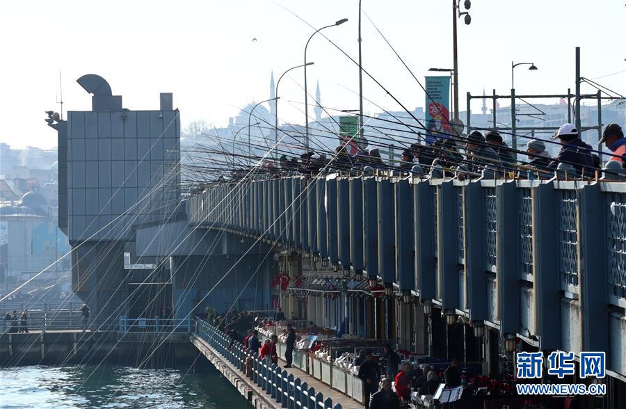 1月14日,在土耳其伊斯坦布尔,人们在海边垂钓。 近日,土耳其最大城市伊斯坦布尔的气温转暖,不少垂钓爱好者来到海边,享受冬日的暖阳和垂钓的乐趣。 新华社记者 徐速绘 摄