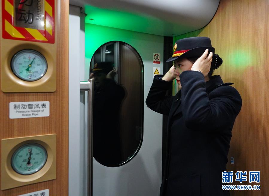 1月3日晚,车辆即将到达南昌西站,卞菁整理衣帽。新华社记者 张浩波 摄