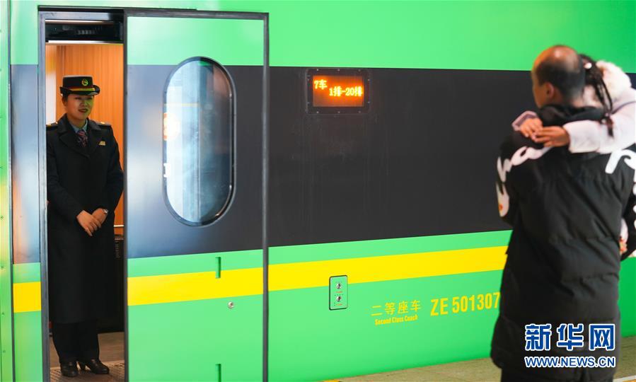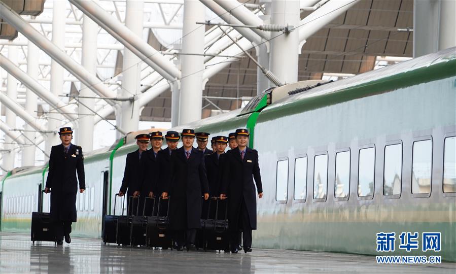 1月3日,卞菁和同事们从井冈山站出发,准备前往北京。新华社记者 张浩波 摄