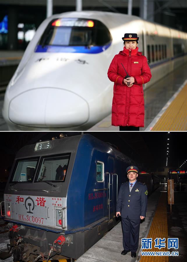 拼版照片上图为太原客运段的列车长陈海燕在西安北站留影(新华社记者詹彦1月11日摄);下图为太原客运段的列车长赵耀在太原站留影(新华社记者杨晨光1月11日摄)。新华社发