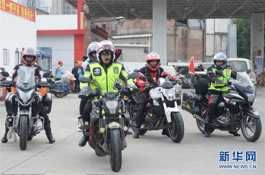 1月15日,在福建漳州,骑摩托车返乡的外来务工人员稍事休整后继续上路。 新华社记者 贺灿铃 摄
