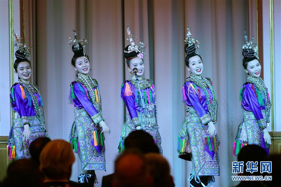 1月15日,在德国柏林,贵州省歌舞剧院艺术团的演员在晚会上表演。 15日晚,2020年“欢乐春节”新春文艺晚会在德国柏林的红色市政厅上演,中德两国各界代表观看演出,共庆中国农历新年。 新华社记者 王勍 摄