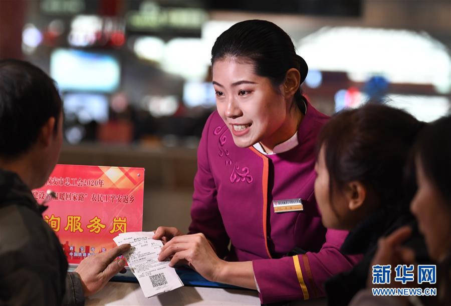 吉如在西安北站咨询服务台解答旅客的问题(1月15日摄)。 新华社记者 陶明 摄