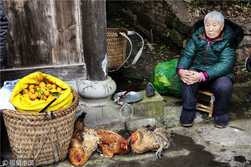 2019年1月26日,重庆中山古镇,880桌“千米长宴”5万人共品年味。当地赶来的村民。