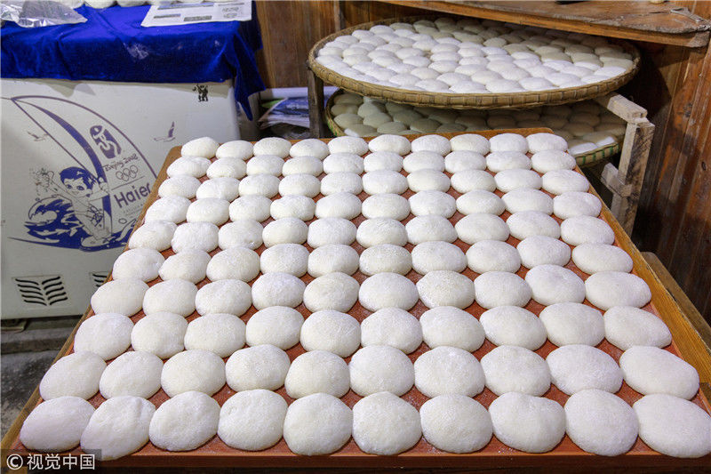 2019年1月26日,重庆中山古镇,880桌“千米长宴”5万人共品年味。街坊们在头天就开始准备各种菜肴与小吃。