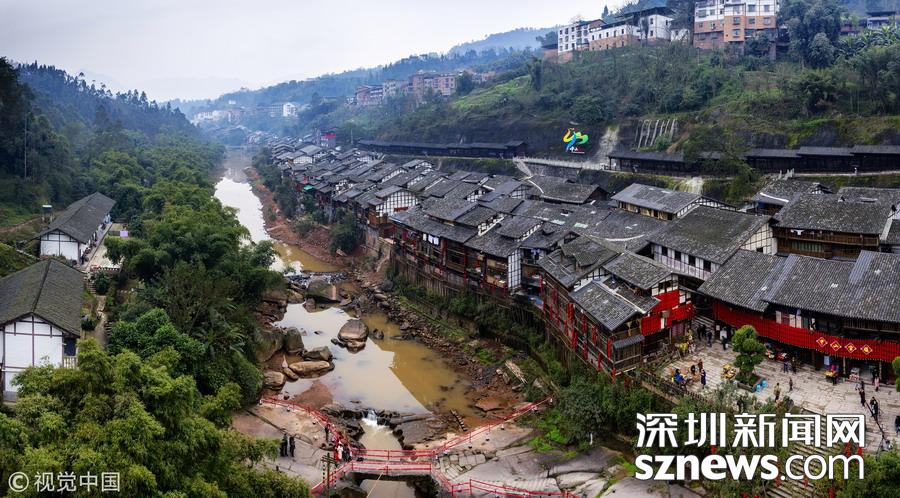 深圳新闻网讯2019年1月26日,重庆中山古镇,880桌“千米长宴”5万人共品年味。880多张席桌在老街屋檐下一字摆开,“千米长宴”正式开席。