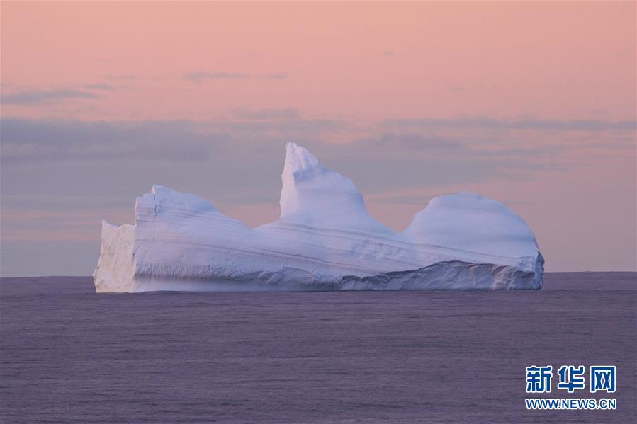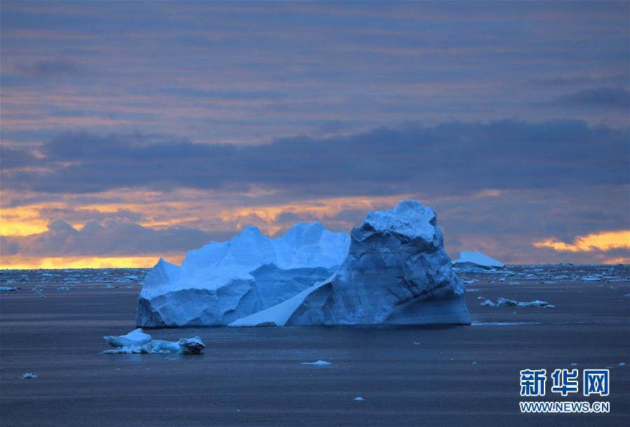 南大洋上的午夜冰山(2019年12月28日摄)。新华社记者刘诗平摄