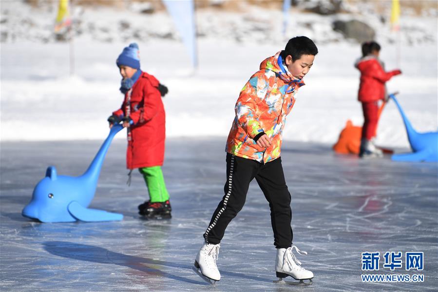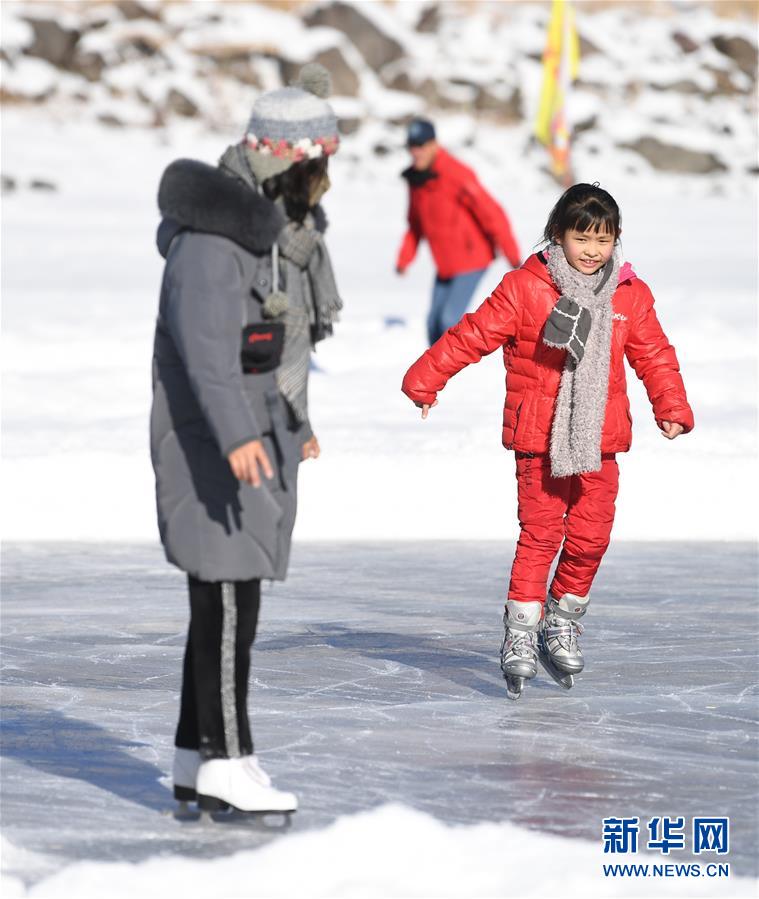 1月18日,游客在新疆天池景区滑冰。新华社记者 沙达提 摄