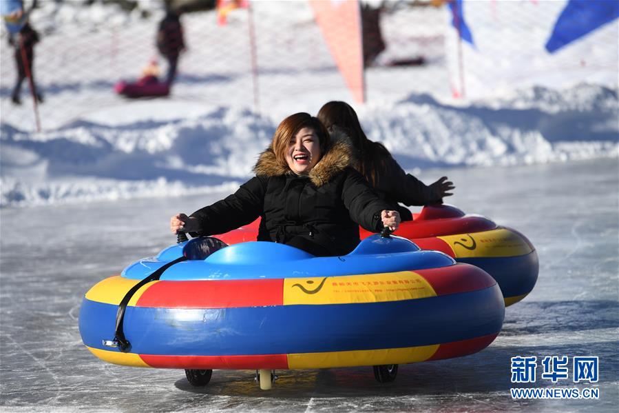 1月18日,游客在新疆天池景区玩电动碰碰车。新华社记者 沙达提 摄