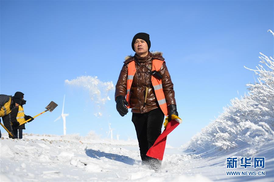 1月13日,白音库伦综合维修车间的防护员在作业点值守。新华社记者刘磊摄