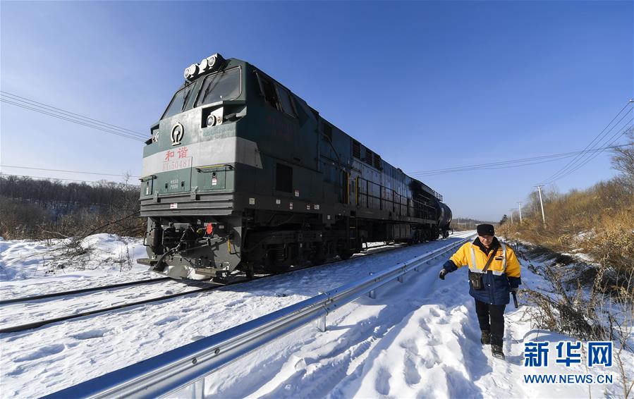 临近送水地点,送水员黄卫东指挥列车前往停靠点(1月17日摄)。新华社记者许畅摄