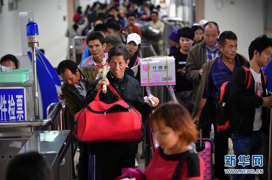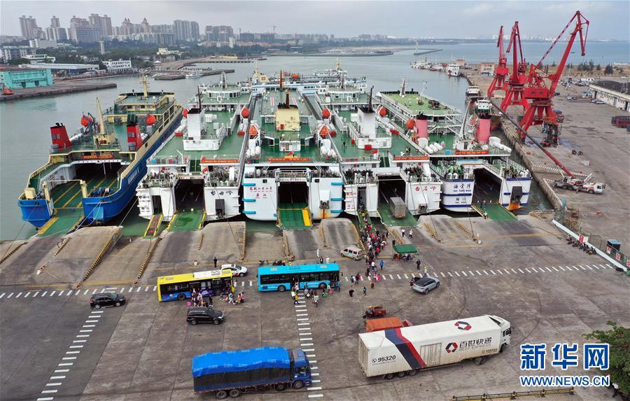 1月19日,来自湖南的务工人员在海口秀英港轮渡码头登船返乡。 新华社记者 郭程 摄