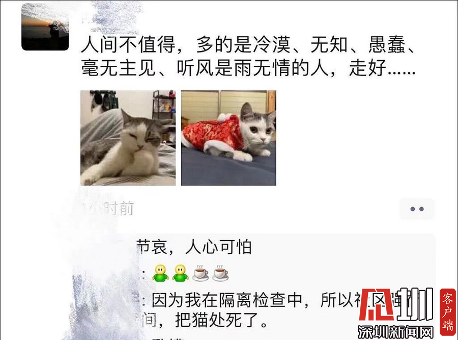 见圳客户端·深圳新闻网2020年2月13日讯 (见圳客户端、深圳新闻网记者战旗 )新冠肺炎疫情发生以来,随着人们对野生动物传染病关注度的提高,宠物的传染病也被越来越多的人听说。疫情的罪魁祸首明明是非法抓捕、食用野生动物的少数人,很多宠物猫狗却在这次疫情中遭了殃。听信#宠物会传染新型冠状病毒#谣言的人,弃养有之、高空抛猫狗有之,甚至活埋别人家的猫……