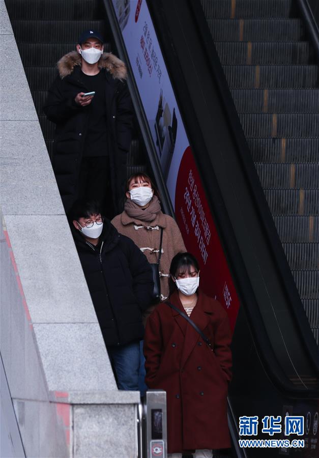 2月24日,在韩国首尔,当地居民乘坐自动扶梯。 新华社记者 王婧嫱 摄