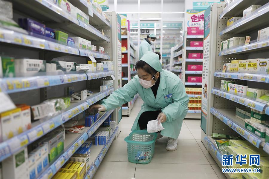 2月22日,王春波在药店内为居民配药。新华社记者熊琦摄