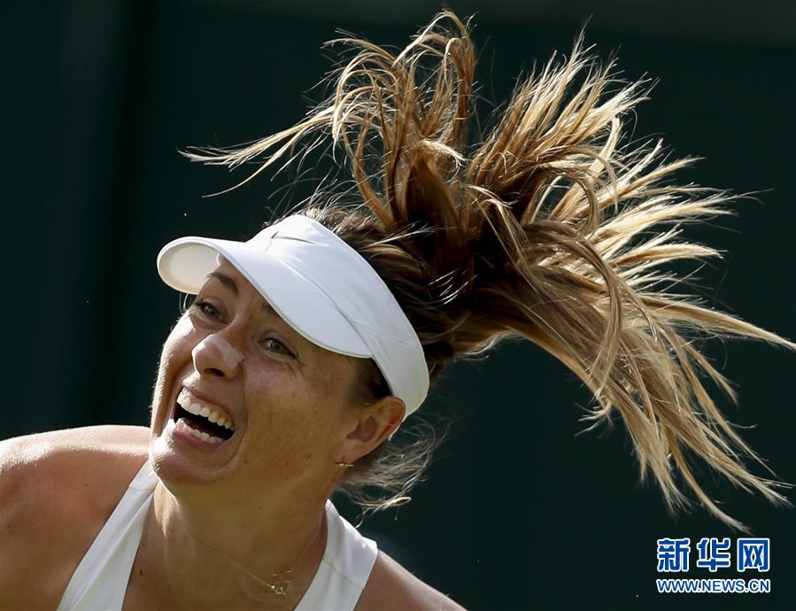 图为2019年7月2日,莎拉波娃在温布尔登网球公开赛女单第一轮比赛中对阵法国选手帕尔芒捷。比赛进行至第三盘时,莎拉波娃退赛,止步首轮。 新华社记者韩岩摄