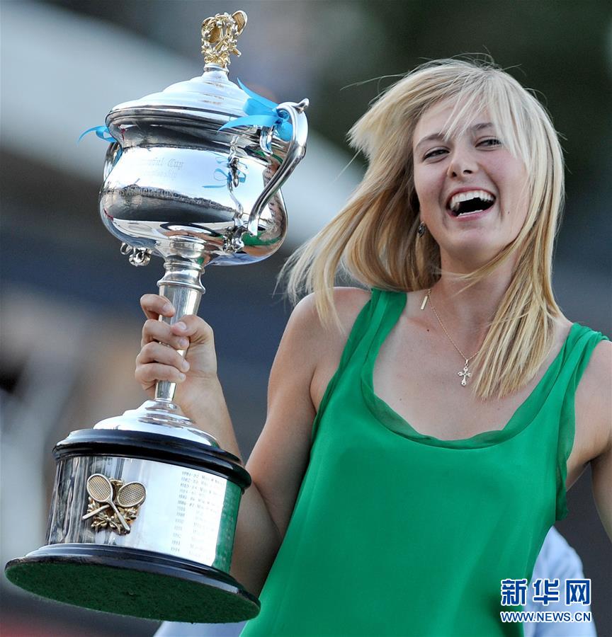 图为2008年1月26日,莎拉波娃在获得澳网女单冠军后,来到墨尔本市的亚拉河畔接受拍照。 新华社记者吕小炜摄