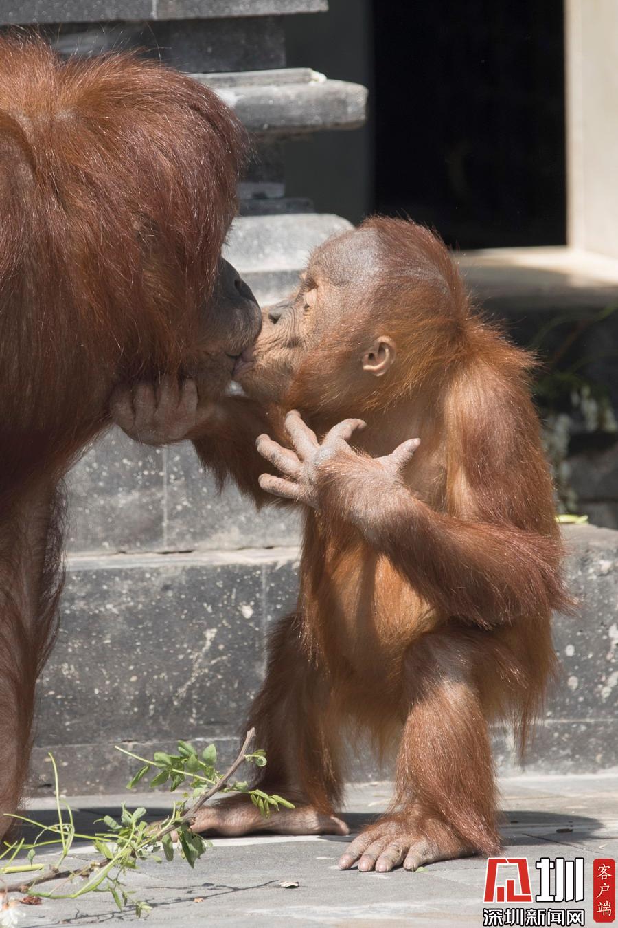 当时三岁的 Berani正独自在户外玩耍,不一会它的妈妈 Sari就找来了,一把拖着娃从草地上回到家门口,然后立刻送上拥抱和亲吻,原来猩妈妈是想孩子了呀!