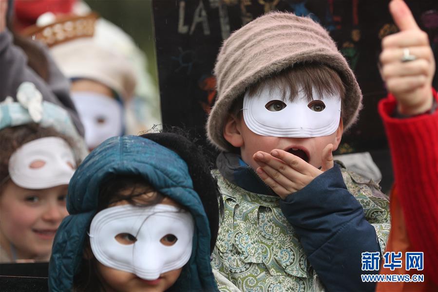 2月27日,儿童在比利时布鲁塞尔参加狂欢节活动。 新华社记者郑焕松摄