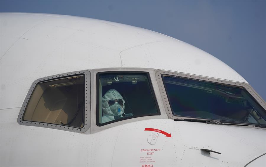 1月28日,飞行员驾驶满载援助物资的飞机抵达武汉天河机场。新华社记者 程敏 摄