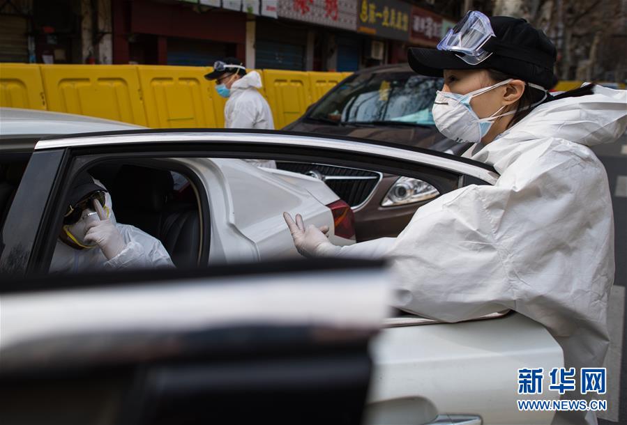 2月29日,W大武汉紧急救援队队长王紫懿(右)与李文建在商量出车事宜。新华社记者 肖艺九 摄
