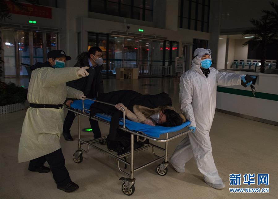 2月29日凌晨,王震(右一)协助将产妇刘婷送至CT室做产前检查。新华社记者 肖艺九 摄