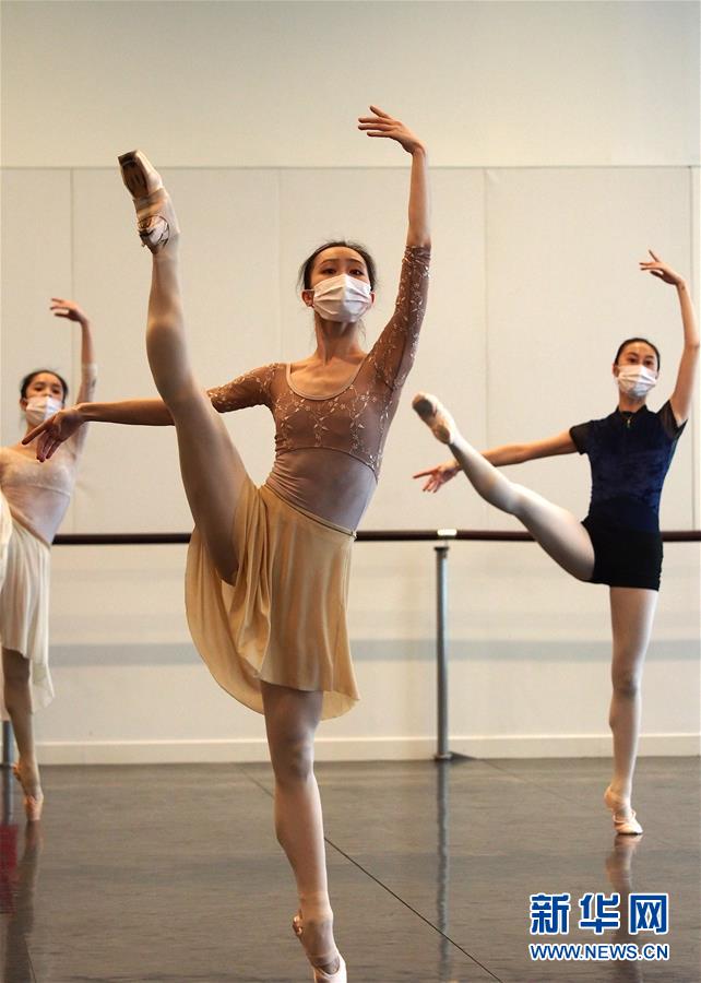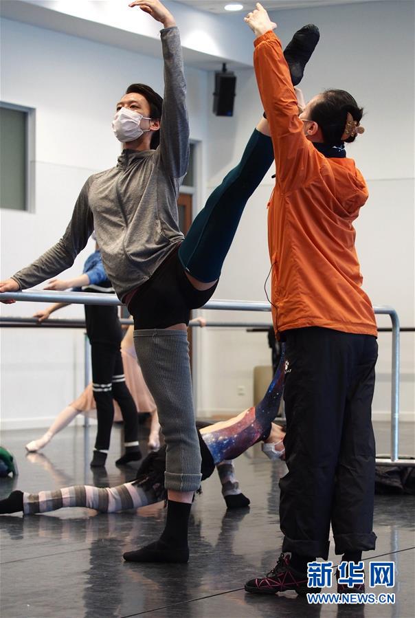 2月29日,上海芭蕾舞团演员在通过网络直播的“公益公开课”上示范芭蕾舞基础动作。新华社记者任珑摄
