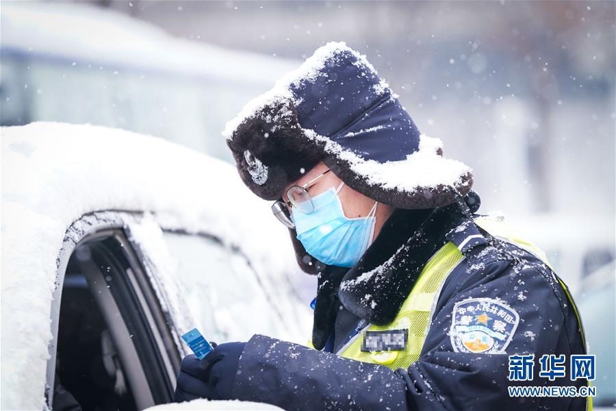 近日,哈尔滨市迎来连续降雪降温天气,哈尔滨市公安局党员突击队队员、交警支队机动大队辅警李可心像往常一样,在负责的出入口值守。李可心的父亲李论是哈尔滨市公安局道外分局太谷派出所民警,李可心的母亲王晶是哈尔滨市一家医院的医生。从1月26日开始,李可心和父母一直坚守在防控一线。疫情严峻时期,家里三口人时常见不到面。32岁的李可心原计划今年与女朋友筹办婚礼,由于防控任务紧急,也暂时搁置下来。