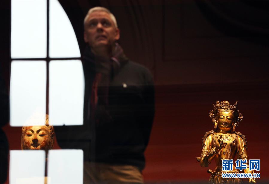 3月2日,一名观众在法国巴黎赛努奇亚洲艺术博物馆举办的媒体预展上参观。 新华社记者 高静 摄
