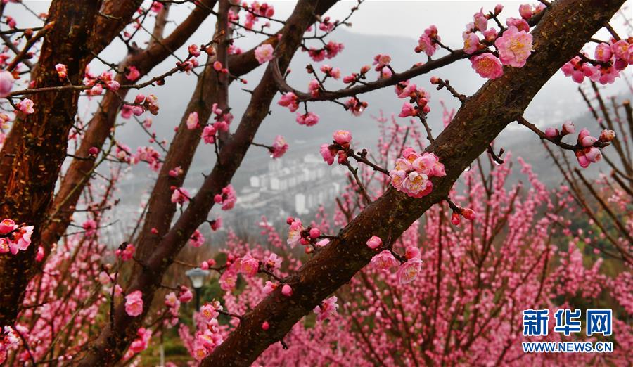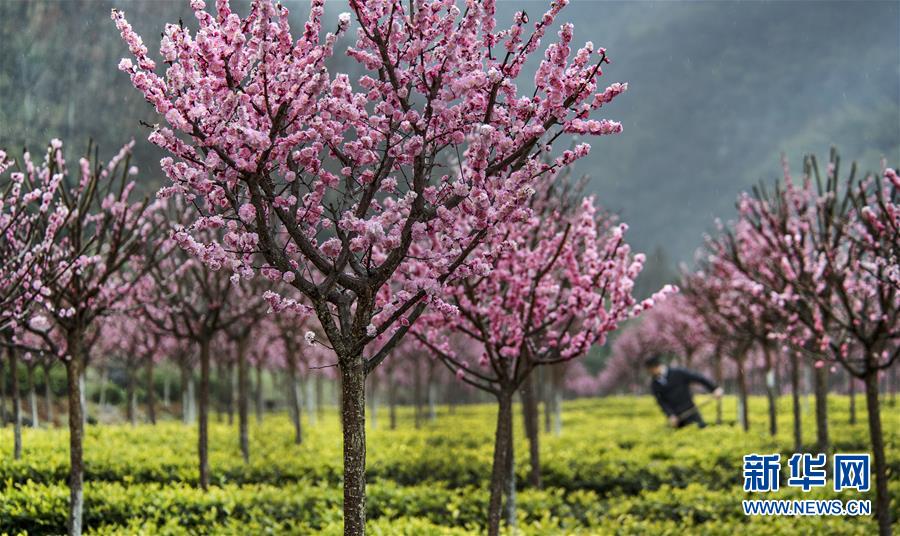 3月2日拍摄的平利县长安镇洪福茶山盛开的春梅。新华社记者陶明摄