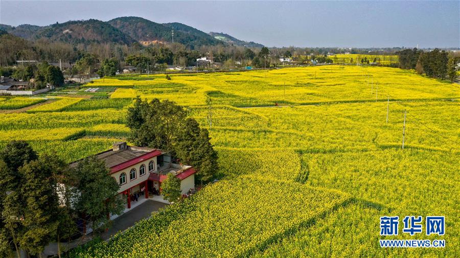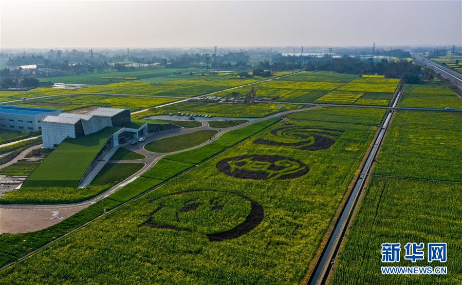 2月24日在四川省大邑县安仁镇永兴村拍摄的油菜花田(无人机照片)。新华社记者王曦摄