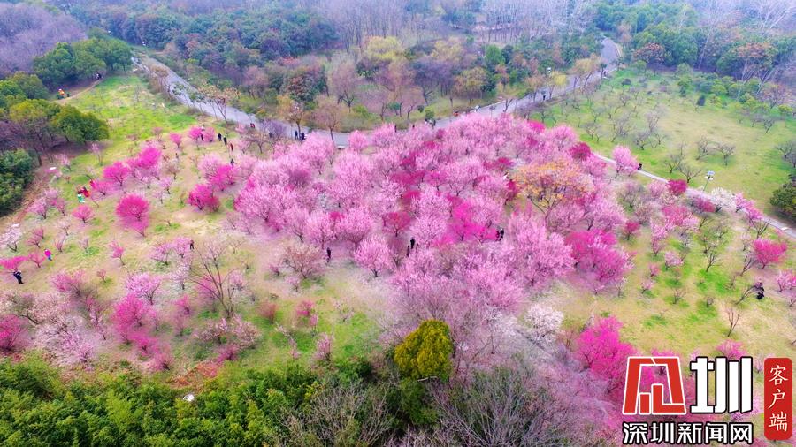 2020年2月26日,春暖花开,春意盎然,江苏省扬州市蜀冈西峰生态公园内梅花竞相绽放,五颜六色的梅花树为古城大地披上七彩春装,美不胜收,吸引了市民和游客前来踏春赏景。