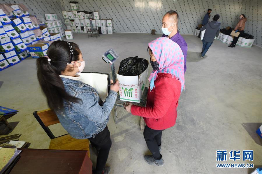 3月4日,在靖远县北湾镇新坪村农贸市场,收购商收购农民采摘的黄瓜。新华社记者 范培珅 摄