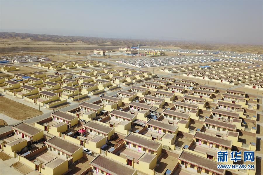 这是3月4日在靖远县石门乡路庄村易地扶贫搬迁搬入地——三滩镇银滩村拍摄的居民住宅(无人机照片)。新华社记者 范培珅 摄